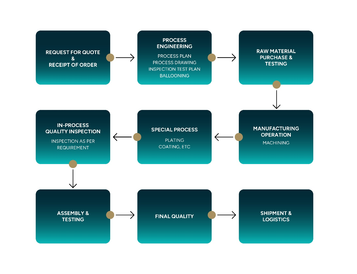 Quality Control is performed through in-process monitoring and concluding inspection is performed using advanced metrology equipment such as laser scanners and coordinate measuring machines (CMMs).
